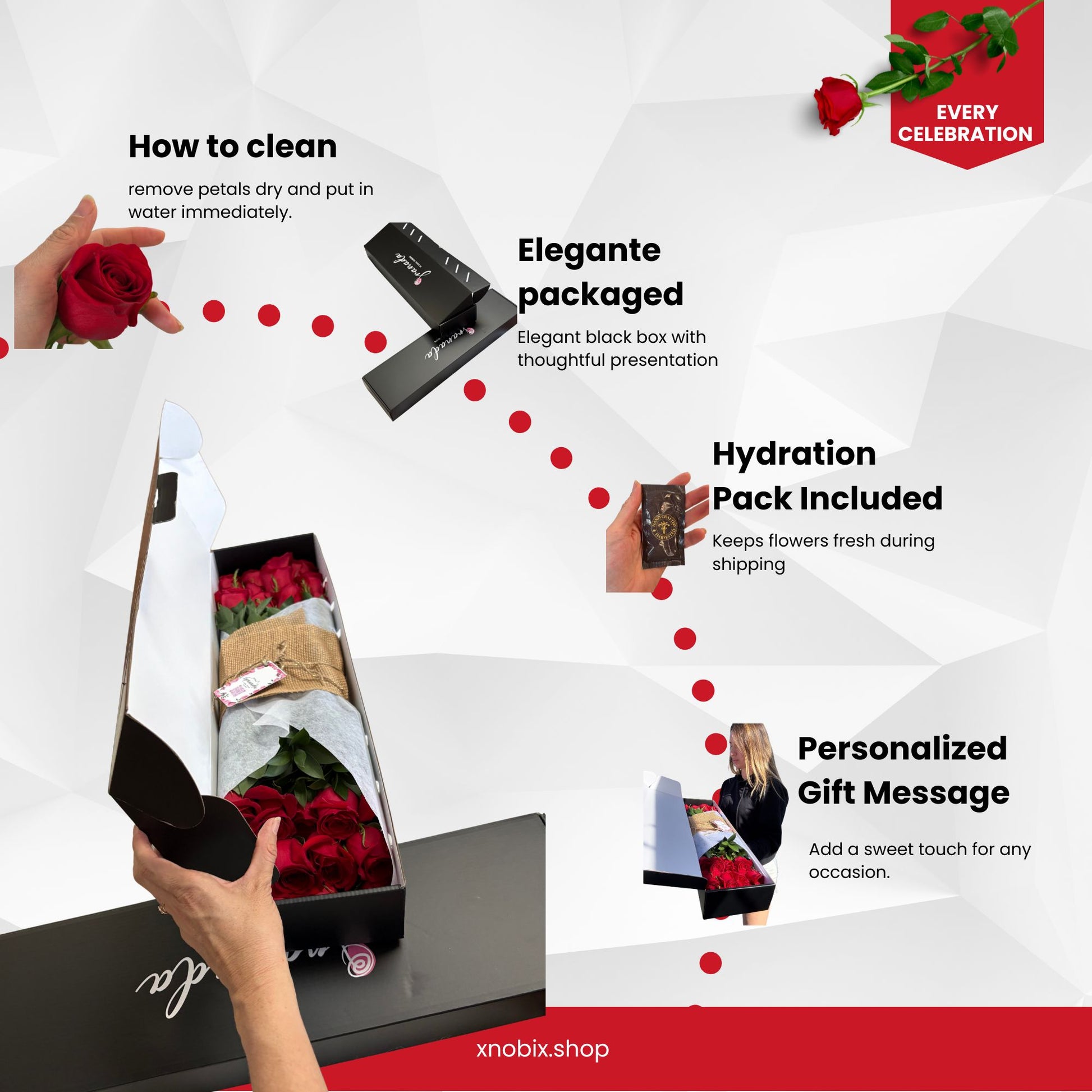 📦 Luxury Box Dimensions: 60–70 cm length, designed to protect and showcase your roses beautifully.